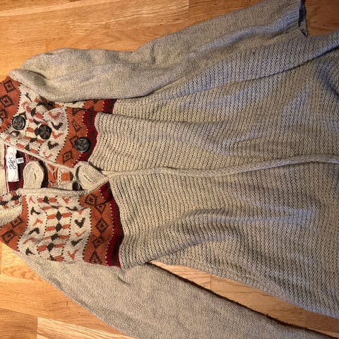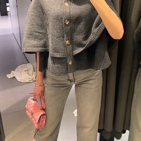 Helt ny grå strikkegenser med kappe fra Zara – str. S. Superfin og populær modell, perfekt til høsten!