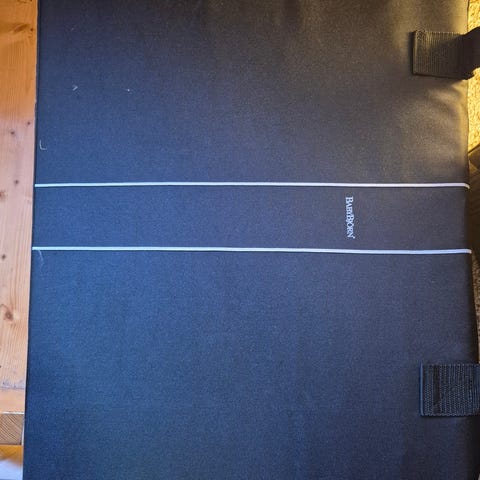 Farge; beige/grå melange. Kan justeres/strammes/slakkes for å få den mer kompakt eller mykere ut ifra behov og bruksområde. Funker både som ammepute og som støttepute for mage eller mellom ben under graviditet.
