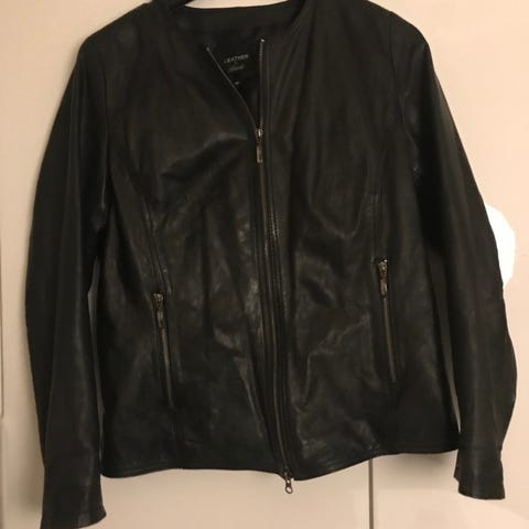 Supermyk og kul skinnjakke fra danske Saint Tropez. Ekstremt behagelig. Smal i modellen. Meget pent brukt.