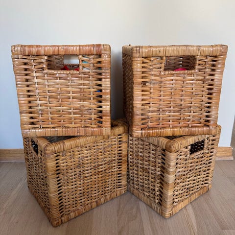 1 stk flettet kurv i naturmateriale selges. Den til venstre med rødt kryss er solgt.