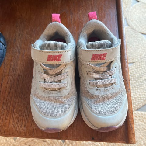 Svarte Nike joggesko i størrelse 25. litt slapp borrelås på ene skoen som kan fikses med litt lim, men ingen betydning for bruken.