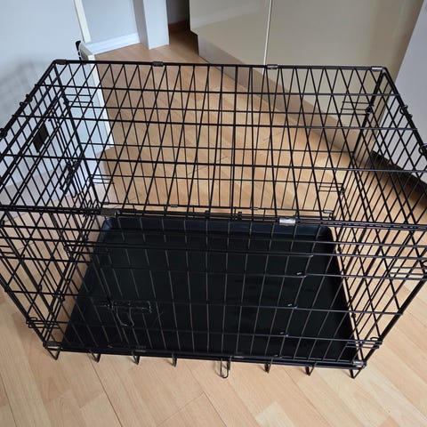 Selger dette kvalitetsburet fra Maelson i størrelse small. Madrassen følger ikke med. Litt skrap foran på nettingen men ikke hull. Lett å flatpakke