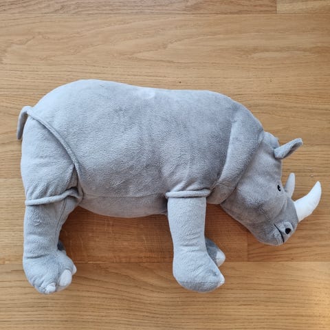 Neshorn bamse. Kan henges opp på veggen som «bamsepynt»