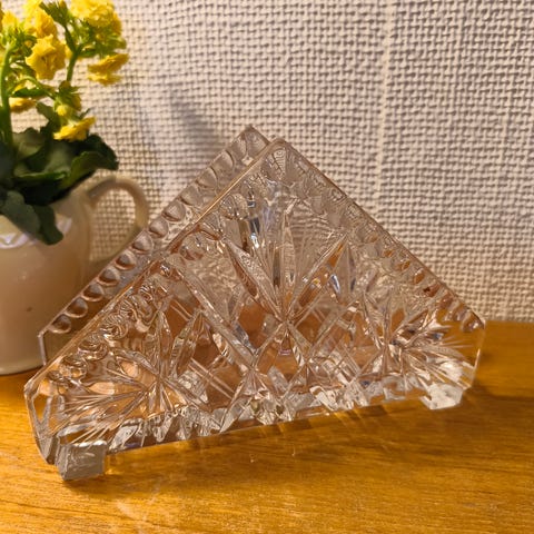Jeg selger en nydelig serviettholder i glass.