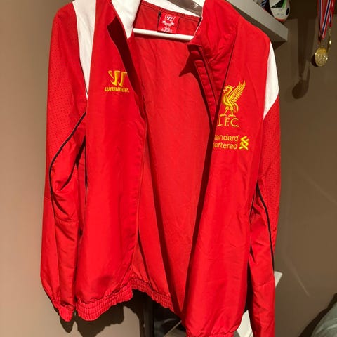 Detaljene på ermet er slitt, men genseren i seg selv er lite brukt