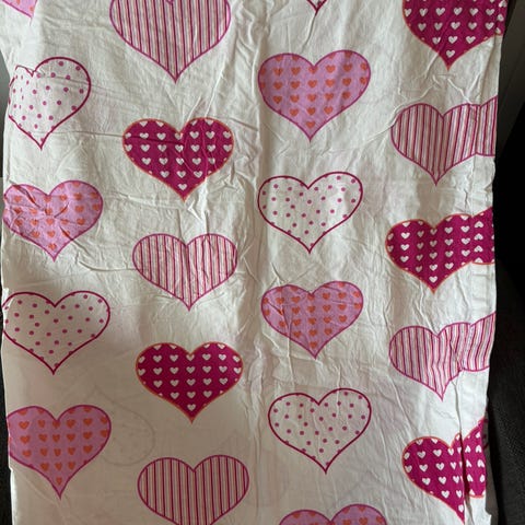 Lysdempende gardiner i samme mønster som sengesett 150,- denne blitt litt solbleket i mønsteret. 140x160 SOLGT❗️