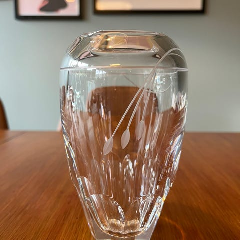 Troyan-keramikk fra Bulgaria, kjent for sitt karakteristiske "påfugløye" mønster, i fersken farge. Kun stått til pynt, ingen skader. Skål er 13,5 cm i diameter og krukken er 7 cm.