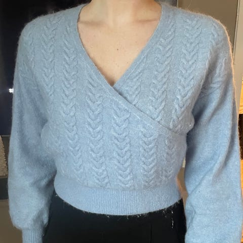 Flatterende ullgenser fra & Other Stories. Genseren er i blå farge, størrelse XS. Genseren har et mønster med V-hals og er laget av 32% alpakka, 32% polyamid, 30% ull og 3%. Behagelig ullgenser grunnet alpakkaull.
