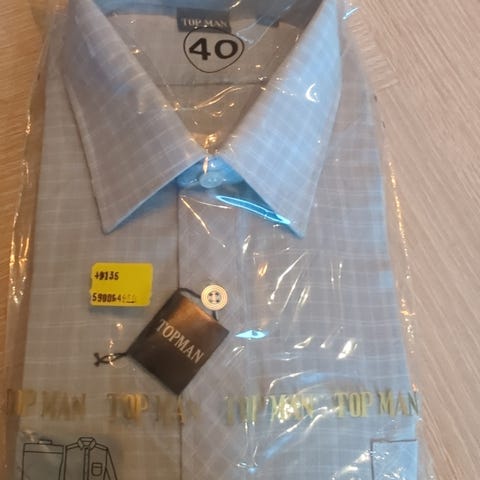 Blå skjorte med ruter uåpnet
