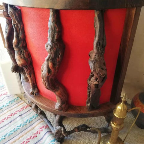 Klassisk hjemmebar med barkrakker. Baren er gammel, men i god stand. Den har god oppbevaringsplass med hyller.