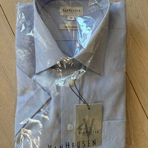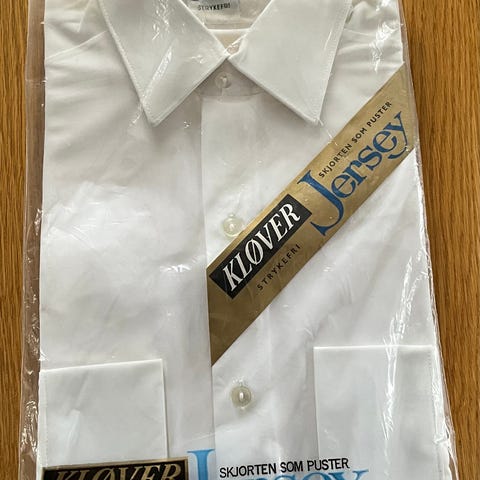 Hvit dress skjorte i uåpnet emballasje. 65% polyester og 35% combed cotton.