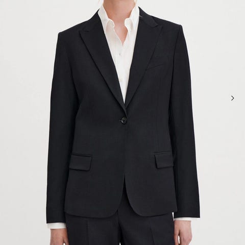 Bomber fasong på dressjakken med strikk nederst, false lommer, uten knapper i front