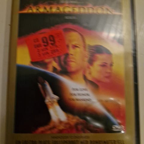 Armageddon DVD Film. Dette er en actionfilm regissert av Michael Bay. Filmen handler om et team som sendes ut i verdensrommet for å forhindre en asteroide fra å kollidere med jorden. DVD-en er i god stand og inkluderer spesialfunksjoner som gir ekstra innsikt i filmens produksjon. Uåpnet fortsatt i folie 😊