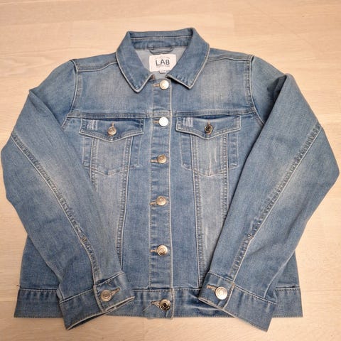Fint/lite brukt dongerijakke fra Zara. Jakken har grønne armer med for. Kjekk høstjakke. Str 164, men liten i størrelse.