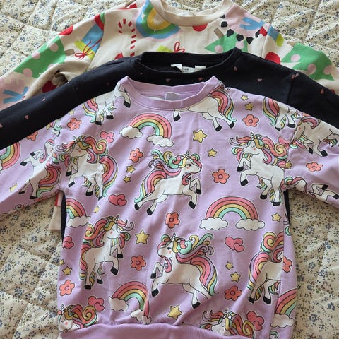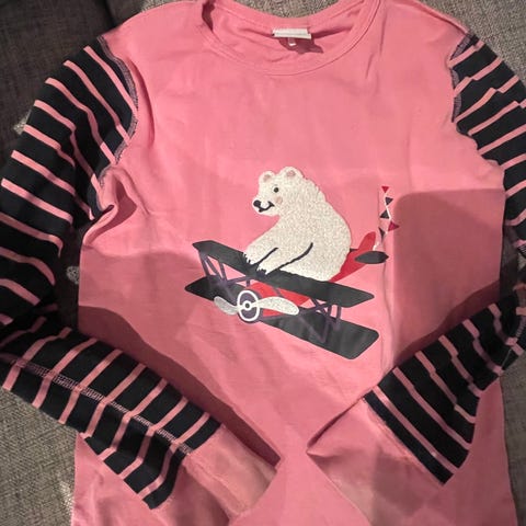 Kjøpt ny av ei dame som syr hjemme «Fargeland». Den var vår pynte genser derfor ble brukt kun noen ganger når vi var på besøk. Veldig pent brukt, ingen anmerkninger. Tilsvarer str. 116-122.