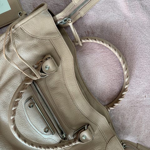 Balenciaga Classic City medium bag i mørkeblått m rosegull detaljer brukt kun noen få ganger . Ingen merker , skader, riper eller misfarging , fremstår som ny. Mål : høyde 25 cm , bredde 38 cm , dybde 14 cm, lengde på håndtak 36 cm lengde på skulderstropp 60 cm.