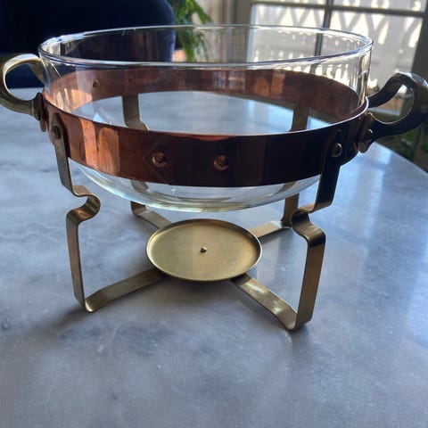OVNSFORM, glass med holder i kobber og messing,