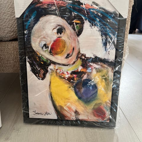 Klovnebilde rosa i ramme med passepartout
