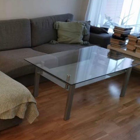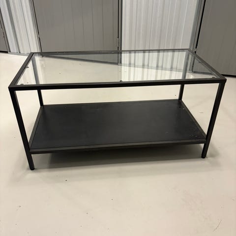 Flott salongbord/tv bord med stålprofiler og glassplater.