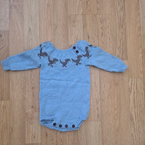 Hjemmestrikka ullbody str 6-12 mnd