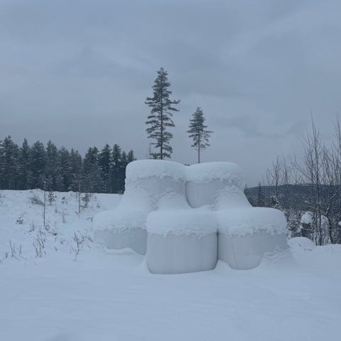 Vi har 650 høyballer til salgs for kr 6 pr kilo eks mva. Buntet i mindre baller på 10-15 kilo. Sein 1. slått i juli, bakketørket i finværet. Mest timotei og engsvingel. Ikke tatt næringsprøve. Ugjødslet. Må hentes av kjøper.