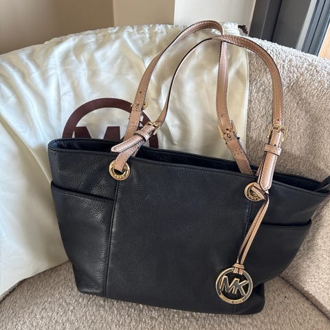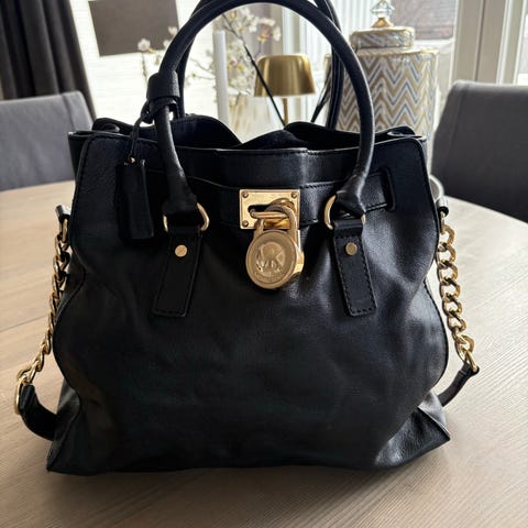 Selger en fin Michael Kors Hamilton veske i sort/gull.
