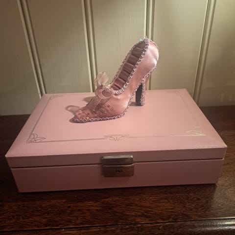 Praktisk og søtt smykkeskrin med Disney-prinsesser på lokket.