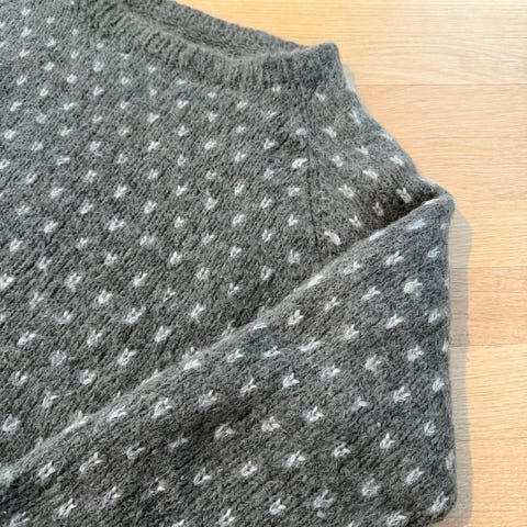 Litt usikker om den er til dame eller herre for den passer fint til begge deler vil jeg si.. str s. Grov strikket men god og myk- noen løse tråder men det er litt av uttrykket.