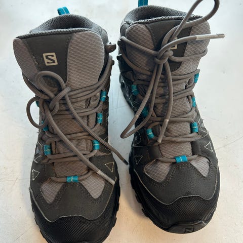 Salomon tursko GORE-TEX og Contagrip-teknologi. Str 39.1/3 men er små i str og fremstår mer som str 38. Selges fordi de er for små. Brukt en gang på en liten tur på tørt underlag. Framstår omtrent som ny.
