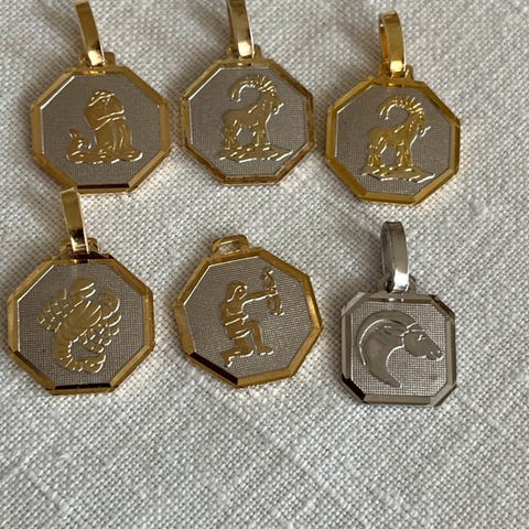 Gullfarget kjede og anheng i sølv. Stjernetegn Tyren. i