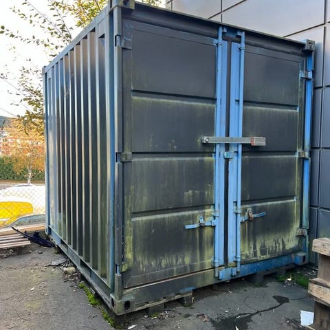 En stk 10 fots container med reol og lys. Bra stand. 35000kr
