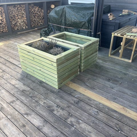 Pallekarmer med 6 stk hjul som kan lett flyttes , perfekt til terrasse etc.