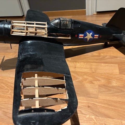 Fløy med den 1 gang og landet på et tak, derav noen skader. Må nok lime motorfeste på den, men ellers så fungerer det som det skal.