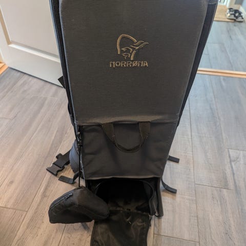En Norrøna bæremeis i god stand selges. Brukt til to barn, men ikke veldig mye brukt og kan ikke se at den har noen slitasje eller skade.