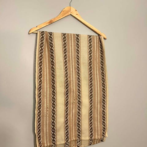 Hvit duk med blomsterapplikasjoner