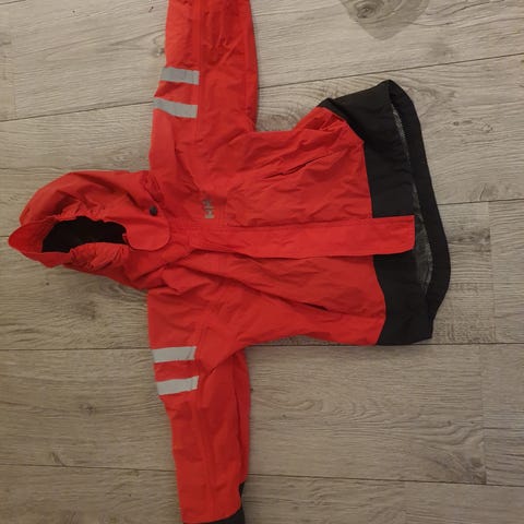 Pent brukt sett, jakke i str. 104 og bukse i str 98. Buksa er stor i størrelsen og brukt samtidig som jakken. Mangler refleks og stoffet ved glidelåsheng er litt ut av fasongen;)