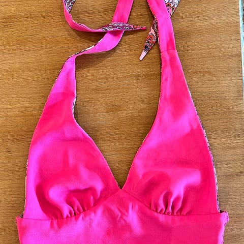 Bikini brukt kun 1 gang, ble for liten. Str xs, men ingen lapp inni. Underdel kan også følge med om ønskelig.