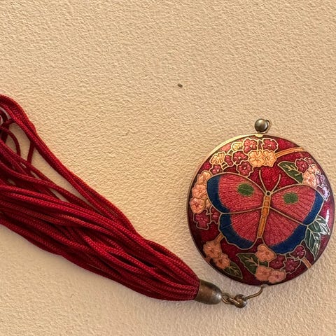 Flott retro sommerfugl brett fra Brasil. Brettet er 41x23,5 cm. Brettet har en liten sprekk i glass(se bilde) knapt synlig.