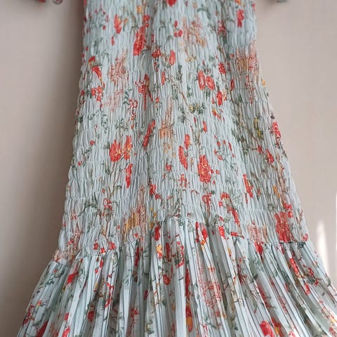 Nydelig blomstrete maxikjole fra bytimo. Kun brukt noen timer i et bryllup sommer 2025. Ny pris 3200kr. Ingen skader eller bruksmerker.
