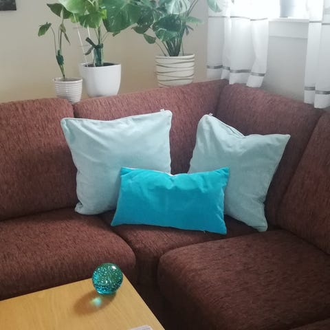 * 2 stk. myke puter i burgunder, 50x50cm, fra Kremmerhuset.