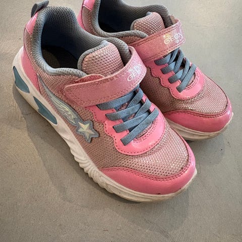 Meget pent og lite brukte sneakers i str 31 selges da mini har vokst. Kun brukt et par ganger til pent og innendørs. Kjempekule sko i sølv med paljetter og glitter. Gøy til jul, nyttår og bursdager, og langt mer komfortable enn vanlig pensko :)