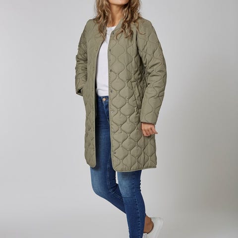 Vattert quiltet vest olivengrønn. Denne vesten har et stilig og praktisk design, med diamantformet sømstruktur, noe som gir et klassisk og isolerende uttrykk. Perfekt høst-antrekk.