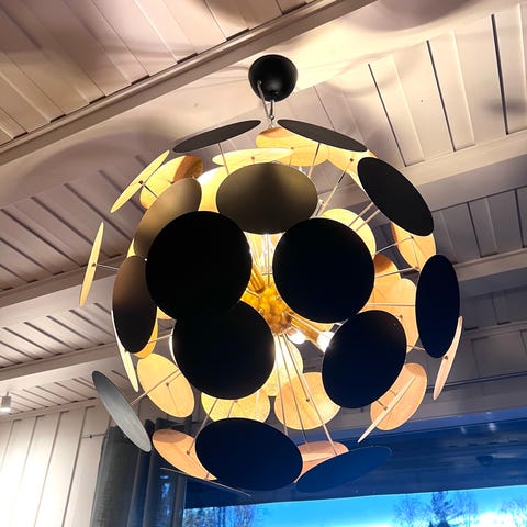 Interiør hus hjem spotter lys lampe lamper belysning bar restaurant kontor design designer møbler sort matt gold lamper hytte spotlights
