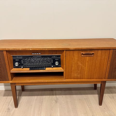 Radionette Duett radio til salgs. Ser ganske fin ut, men solskade på toppen (ser det har vært pynt oppå). Se bilde.