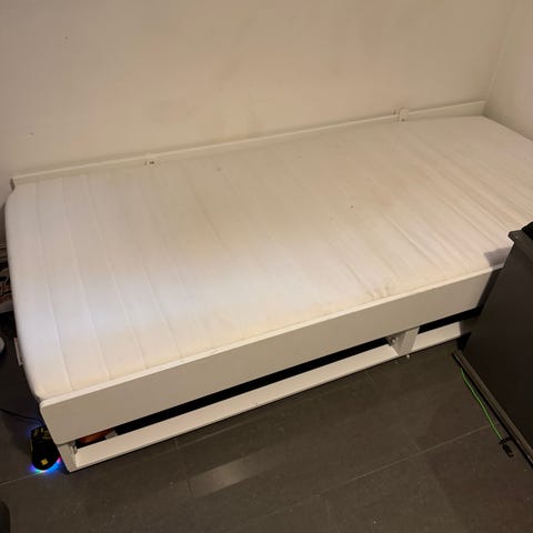 Svart sokkel til Svane dobbeltseng 150x200. Vi har satt på bein på vår gjesteseng.