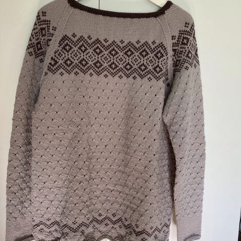 Nydelig genser strikket i Multi popcorn garn fra House of Yarn