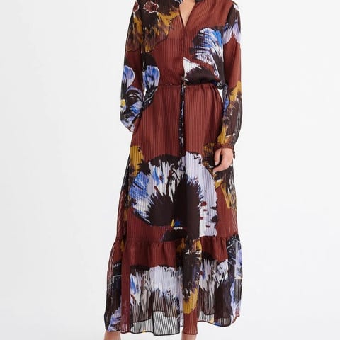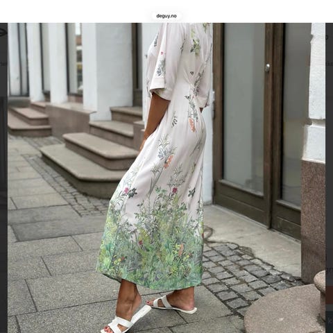 Nydelig mønstret kjole fra Gustav! Knepper foran, knyting i livet, lommer på sidene og strikk nederst på ermene.