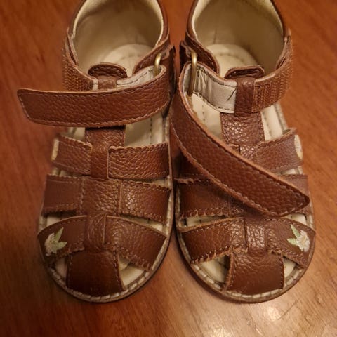 Kan fint freshes opp igjen med litt puss. Gode kvalitetssandaler, brukt en sommer. Bare overflateslitasje.