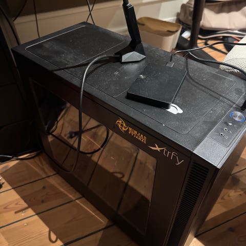 Kabinettdelen har noen skader, men dette påvirker ikke PC-ens funksjonalitet, og kan enkelt byttes ved behov eller ønske.