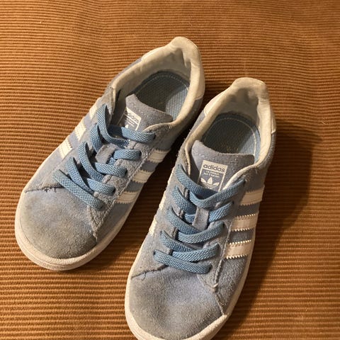 Godt brukte Adidas Coart sneakers i str 35,5 selges billig. Ligner Adidas Samba og Adidas Gazelle i stoff og form. Lys turkis/grønn med hvite striper.